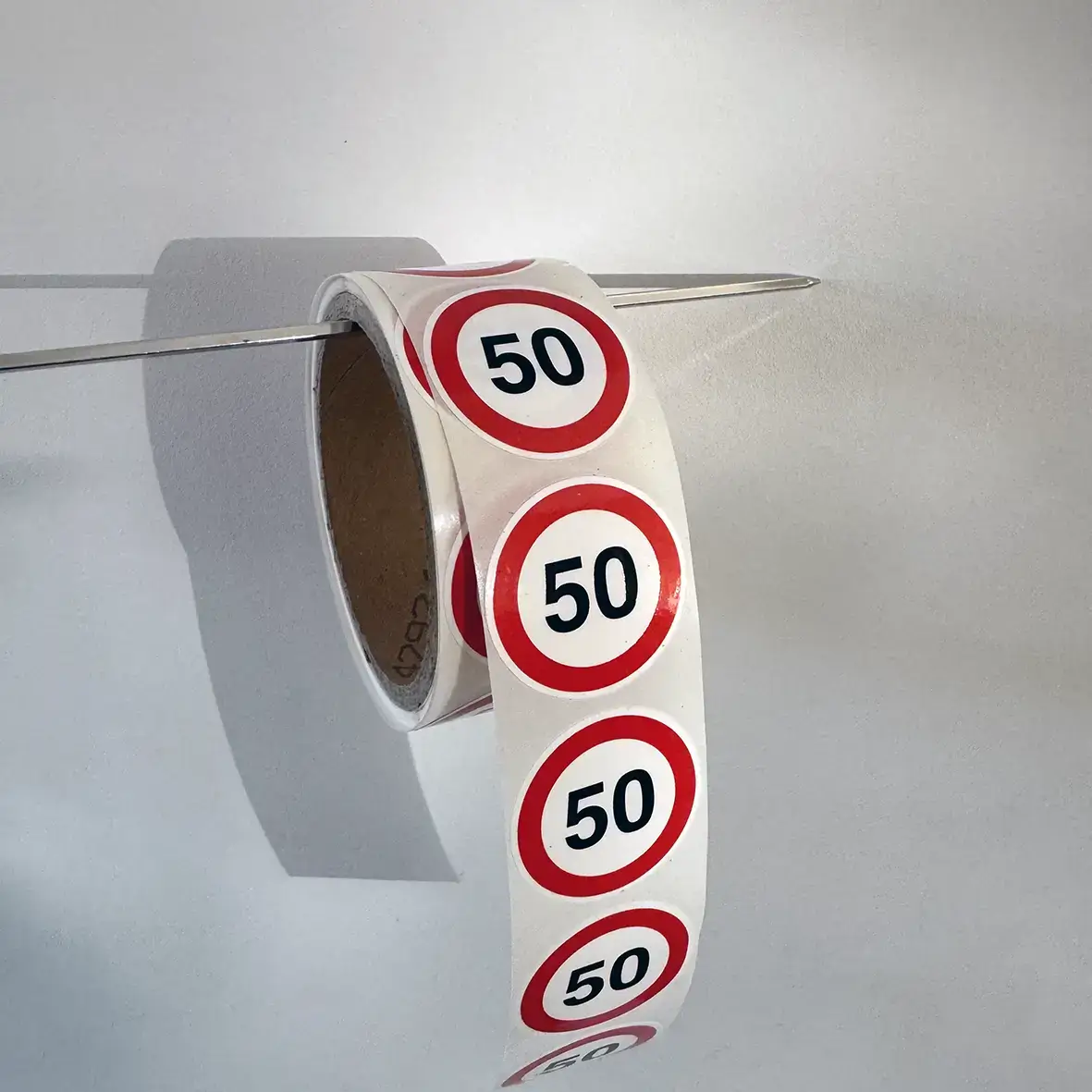 50 jaar kado sticker afgebeeld met een afbeelding van een 50 bord.