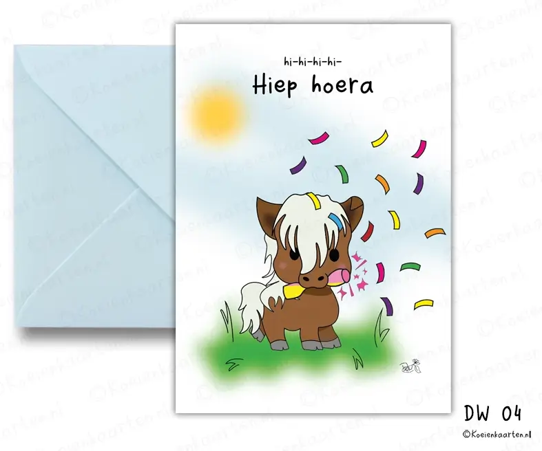 Leuke wenskaart, Hoera paard DW 04 met leuk paardje en confetti pop.